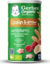 Снеки-звездочки Gerber Оrganik Nutripuffs Рисово-пшеничные звездочки банан малина с 12 мес., 35 г