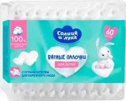 Ватные палочки детские Солнце и Луна с ограничителем, 60 шт