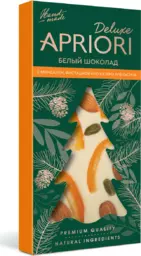 Шоколад белый Apriori Deluxe с миндалем фистакой и апельсином, 85 г