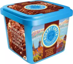 Мороженое пломбир Сам-по Вокруг света шоколадное с лесным орехом и карамелью Бзмж, 450 г