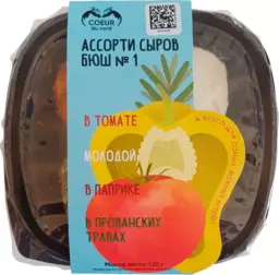 Сыр мягкий Coeur du nord Ассорти Бюш в обсыпке набор №1 томаты паприка прованские травы и молодой 45% Бзмж, 130 г