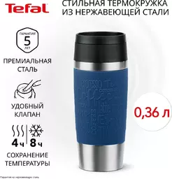 Термокружка Tefal Travel Mug Classic, 360 мл, синяя (N2020310)