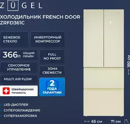 Холодильник Zugel French Door Zrfd361с, бежевое стекло