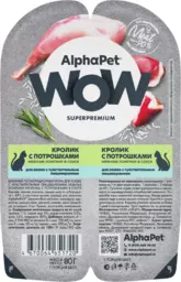 Корм влажный для кошек Alphapet Superpemium Кролик с потрошками нежные ломтики в соусе, с чувствительным пищеварением, 80г