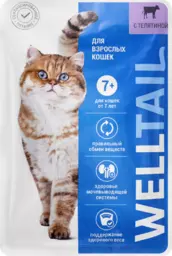 Корм влажный для кошек Welltail с телятиной, старше 7 лет, 75г