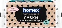 Губки для посуды Homex Home:expert Очень модные 9.5x6,5x3см, голубой/коричневый, Арт. 0047, 6шт