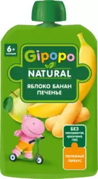 Пюре фруктовое Gipopo Яблоко, банан и печенье, с 6 месяцев, 90г