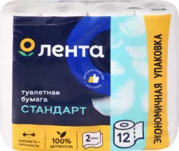 Бумага туалетная Лента 2 слоя белая, 12шт