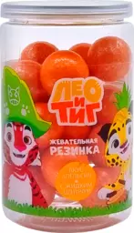 Жевательная резинка Лео и Тиг в форме шарика с жидким центром со вкусом апельсина, 100г