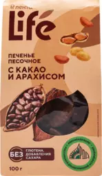 Печенье песочное Лента Life с какао и арахисом, без глютена, сахара и лактозы, 100г