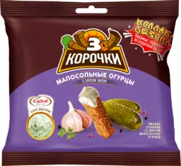 Сухарики ржаные Три Корочки Малосольные огурцы + соус тартар, 85г
