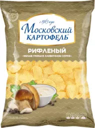 Чипсы картофельные Московский Картофель Хрустящие рифленые со вкусом белые грибы в сливочном соусе, 120г