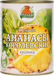 Ананасы Медведь Любимый Королевские в сиропе, кусочки, 580мл