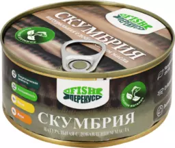 Скумбрия Fish-перекус натуральная, с добавлением масла, 160г