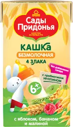 Кашка Сады Придонья безмолочная из злаков с яблоком бананом и малиной обогащённая прибиотиком 125г