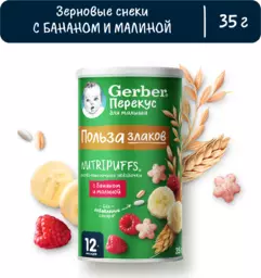 Воздушные снеки Gerber Звёздочки банан-малина с 12 мес 35 г