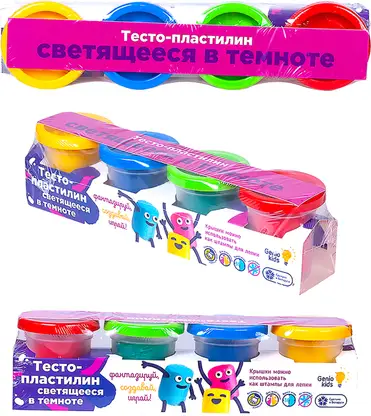 Тесто для лепки Genio Kids 4 цвета светится в темноте 240г 22.5*5.7*5см