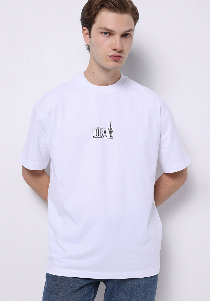 Мужская белая футболка с круглым вырезом свободная с коротким рукавом 47362