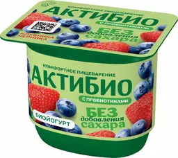 Биойогурт Актибио Клубника-черника без добавления сахара 3% Бзмж 130г