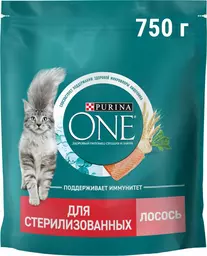 Корм сухой Purina One с лососем и пшеницей для взрослых стерилизованных кошек 750 г