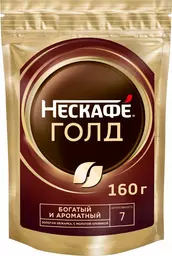 Кофе растворимый Нескафе Голд натуральный сублимированный с добавлением натурального жареного молотого кофе 160г