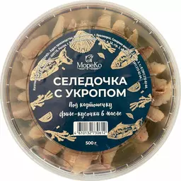 Пресервы Мореко Селедочка с укропом под картошечку рыбные филе-кусочки в масле 500г