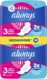 Прокладки гигиенические Always Ultra Super Duo, 3 супер, 5 капель из 8, 16шт