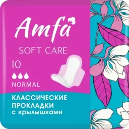 Прокладки гигиенические Amfa Soft Care, с крылышками, normal 3 капли, 10шт