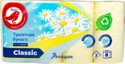 Бумага туалетная Ашан Красная птица многослойная с ароматом ромашки, 2 слоя, 8 рулонов