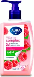 Мыло жидкое Aura Vitamin Complex 2в1 для рук и тела Малина и витамины, 500 мл