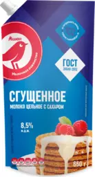 Молоко сгущенное Ашан Красная птица цельное с сахаром 8.5% Гост Бзмж, 650 г