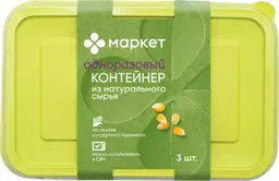 Контейнер одноразовый с крышкой на основе кукурузного крахмала Маркет, 3х700мл