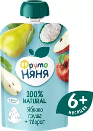 Пюре Фрутоняня яблоко-груша-творог с 6 месяцев, 90г