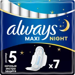 Прокладки Always maxi secure night extra женские гигиенические с крылышками, 7шт