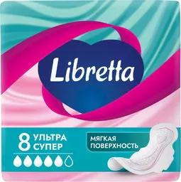Прокладки Libretta Ультра Супер с мягкой поверхностью ультратонкие гигиенические женские 8шт