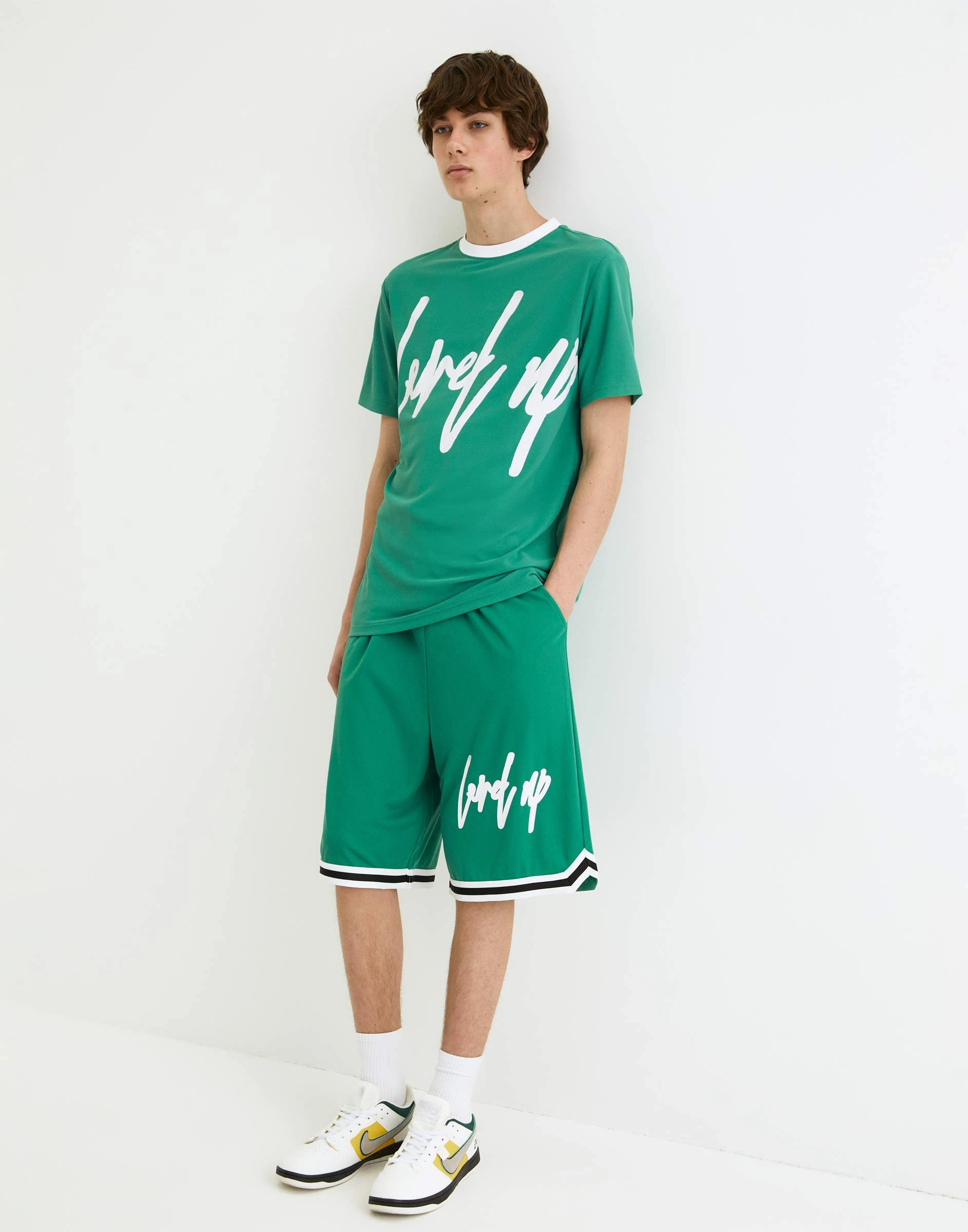 Зелёные шорты oversize с принтом и контрастными полосами Bsh008116-2