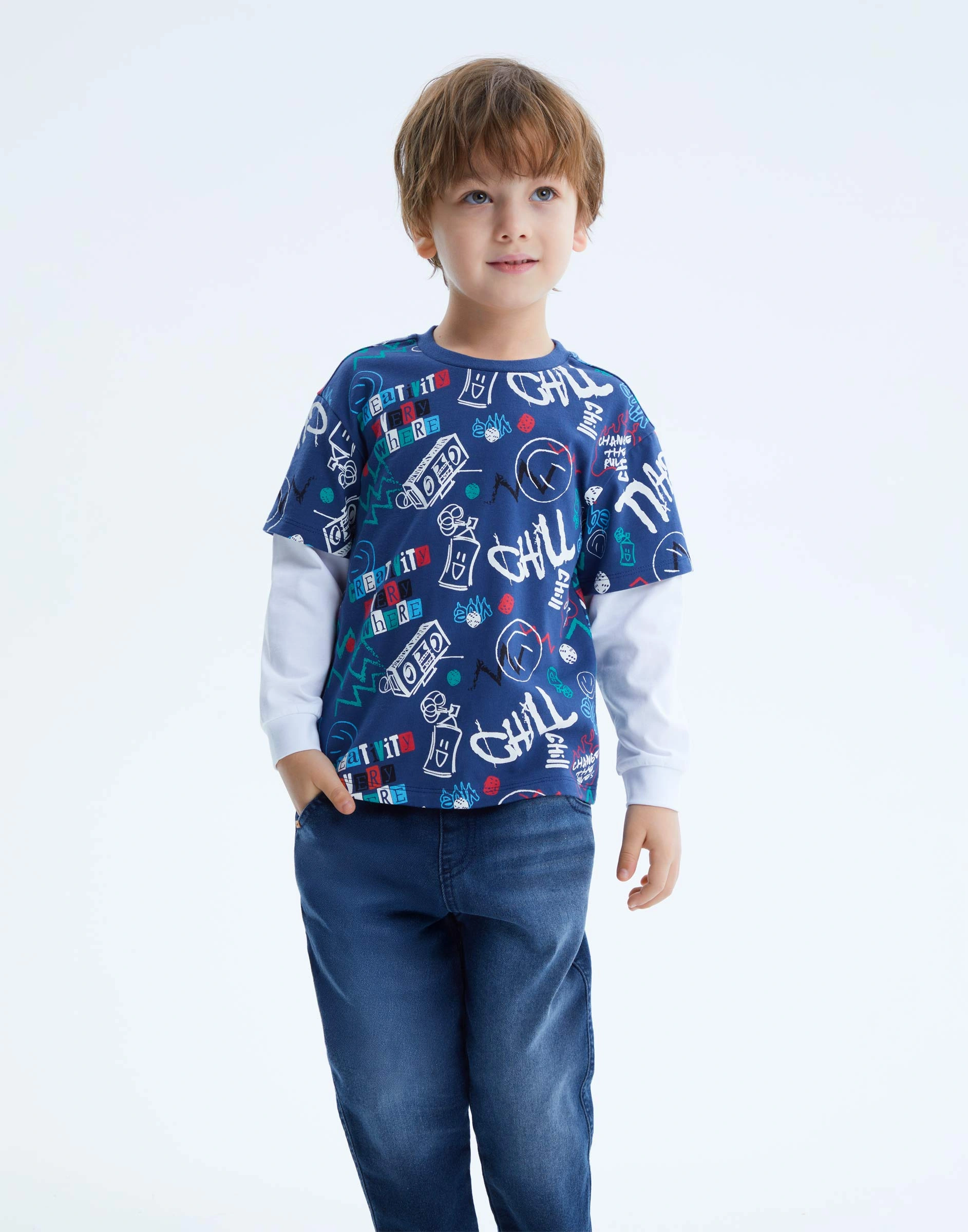 Тёмно-синий лонгслив oversize с принтом для мальчика Bkt015929-2