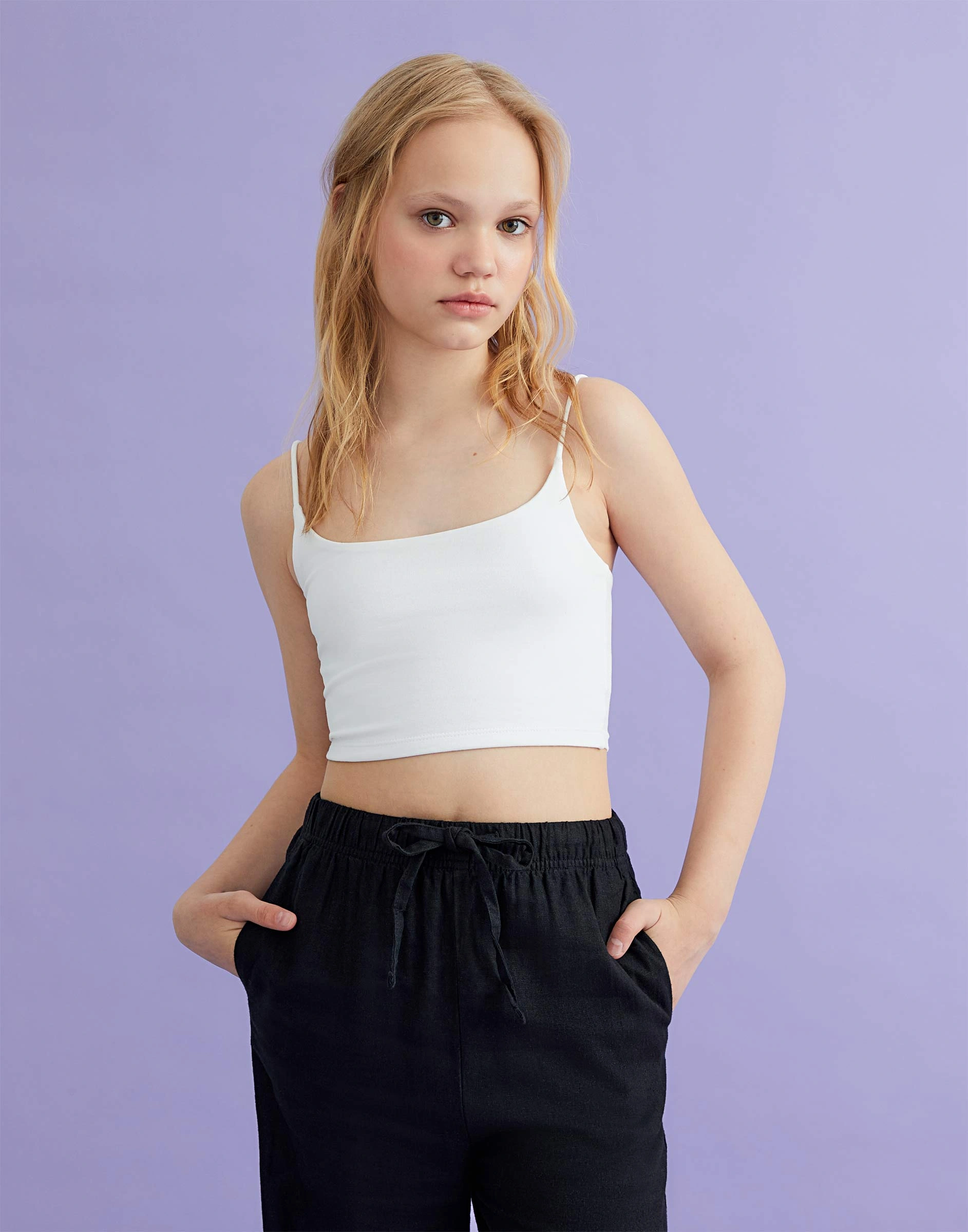 Белый кроп-топ на бретелях Gtn004429-1