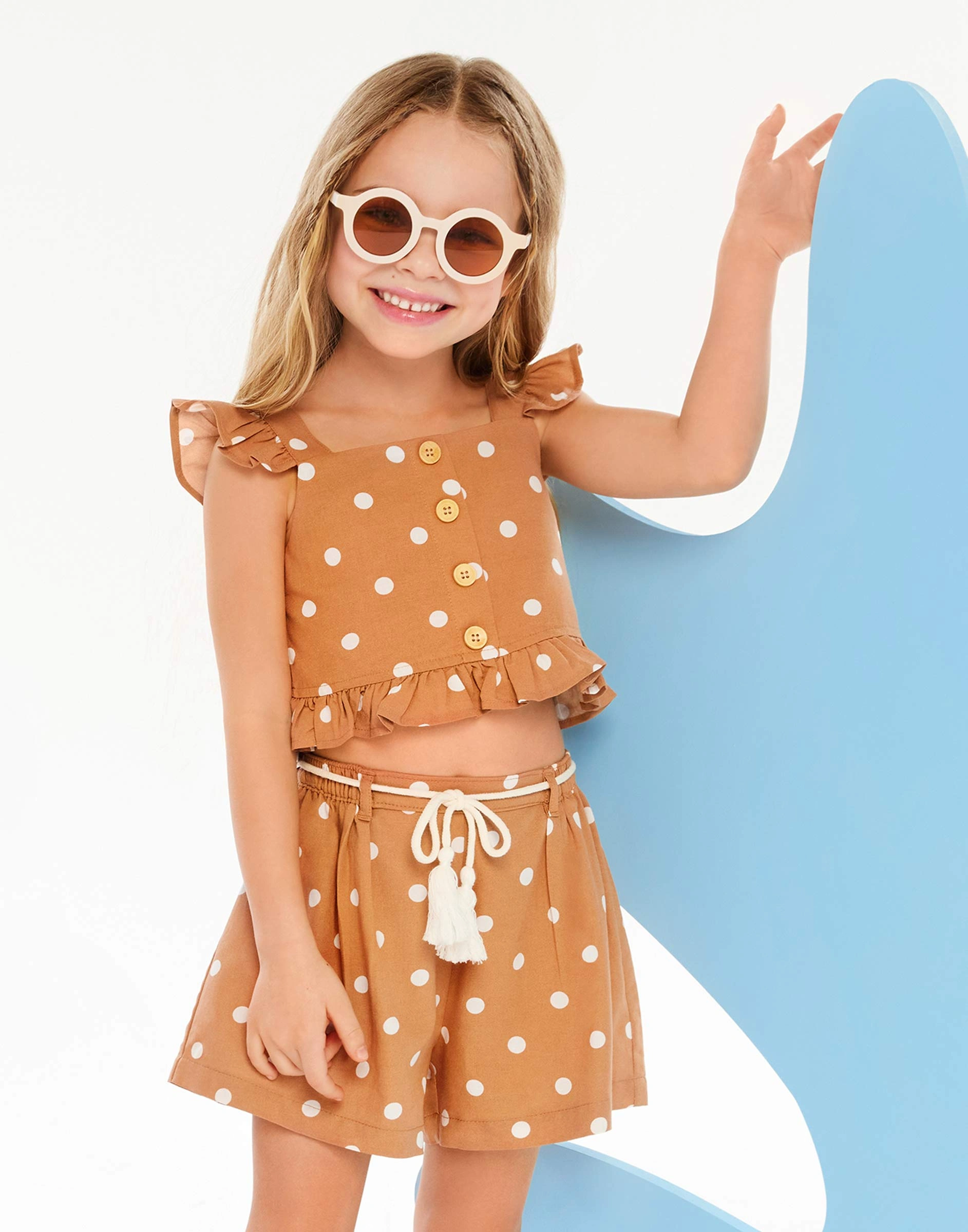 Коричневая блузка в горошек с оборками для девочки Gwt004826-2