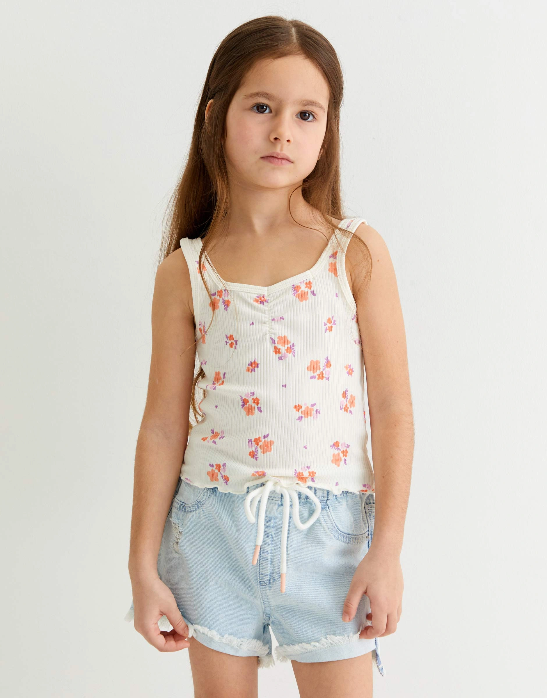 Молочная майка в рубчик с тотальным принтом для девочки Gtn004389-2