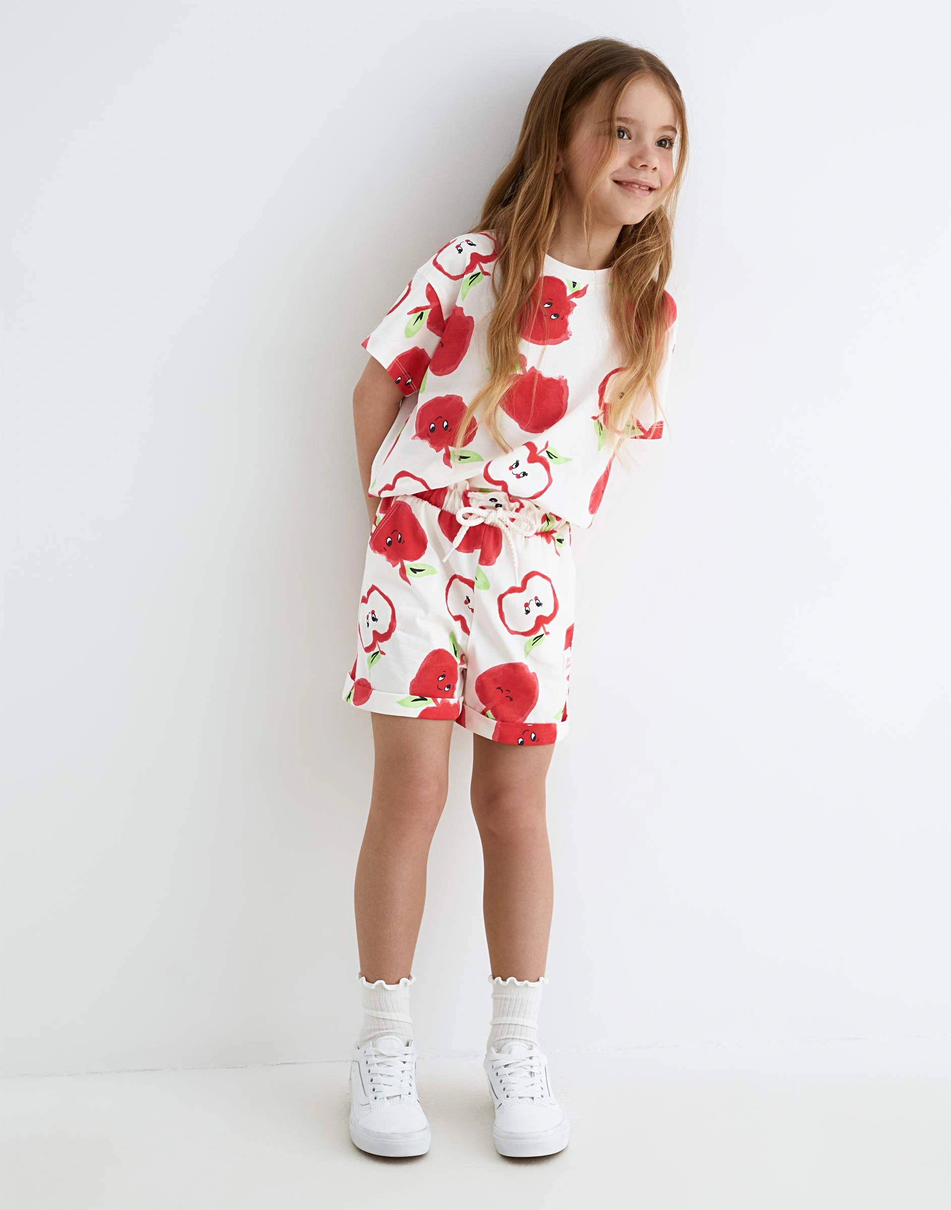 Молочные шорты Paperbag с принтом и подворотами для девочки Gsh012574-1