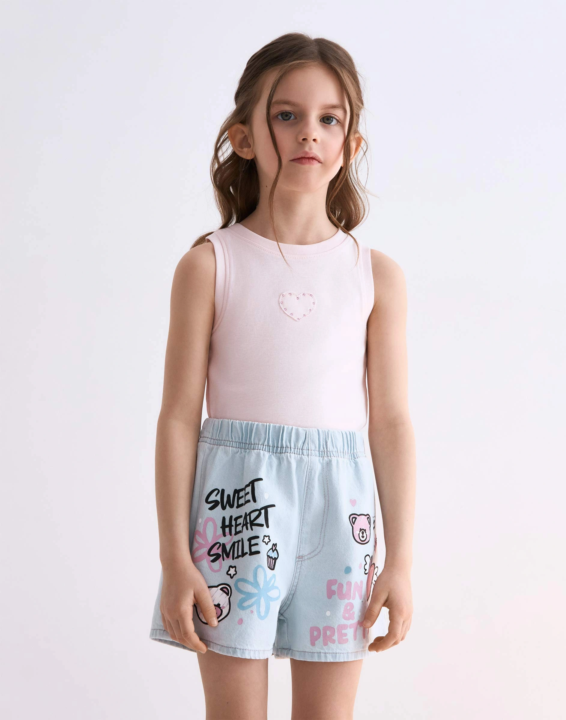 Светло-голубые шорты с принтом для девочки Gsh013104-1