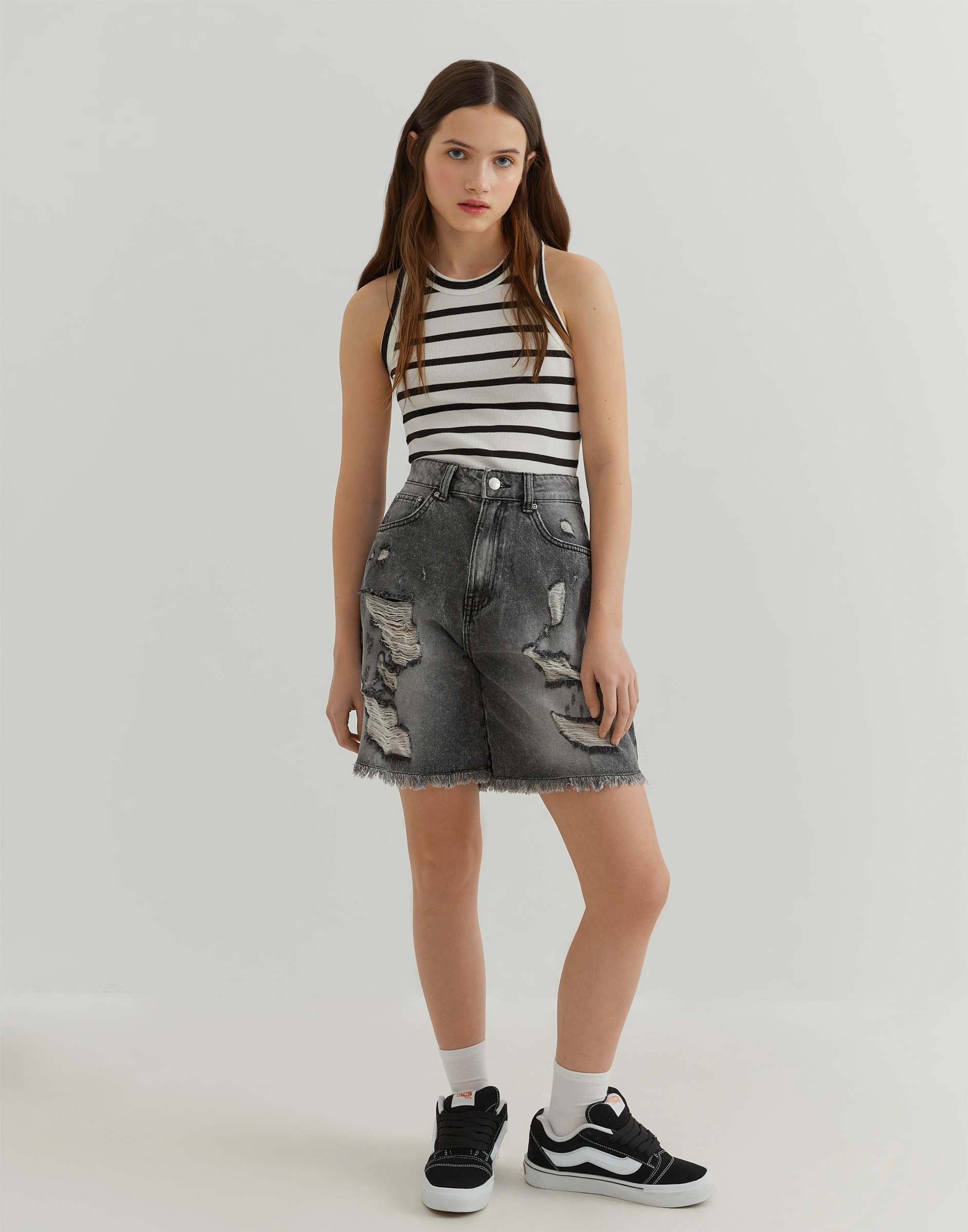 Серые джинсовые шорты Bermudas с рваным дизайном Gsh013129-1