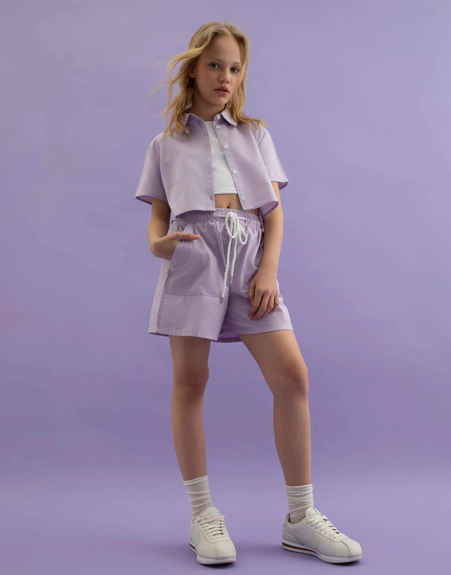Сиреневые шорты Straight с накладными карманами Gsh012492-1