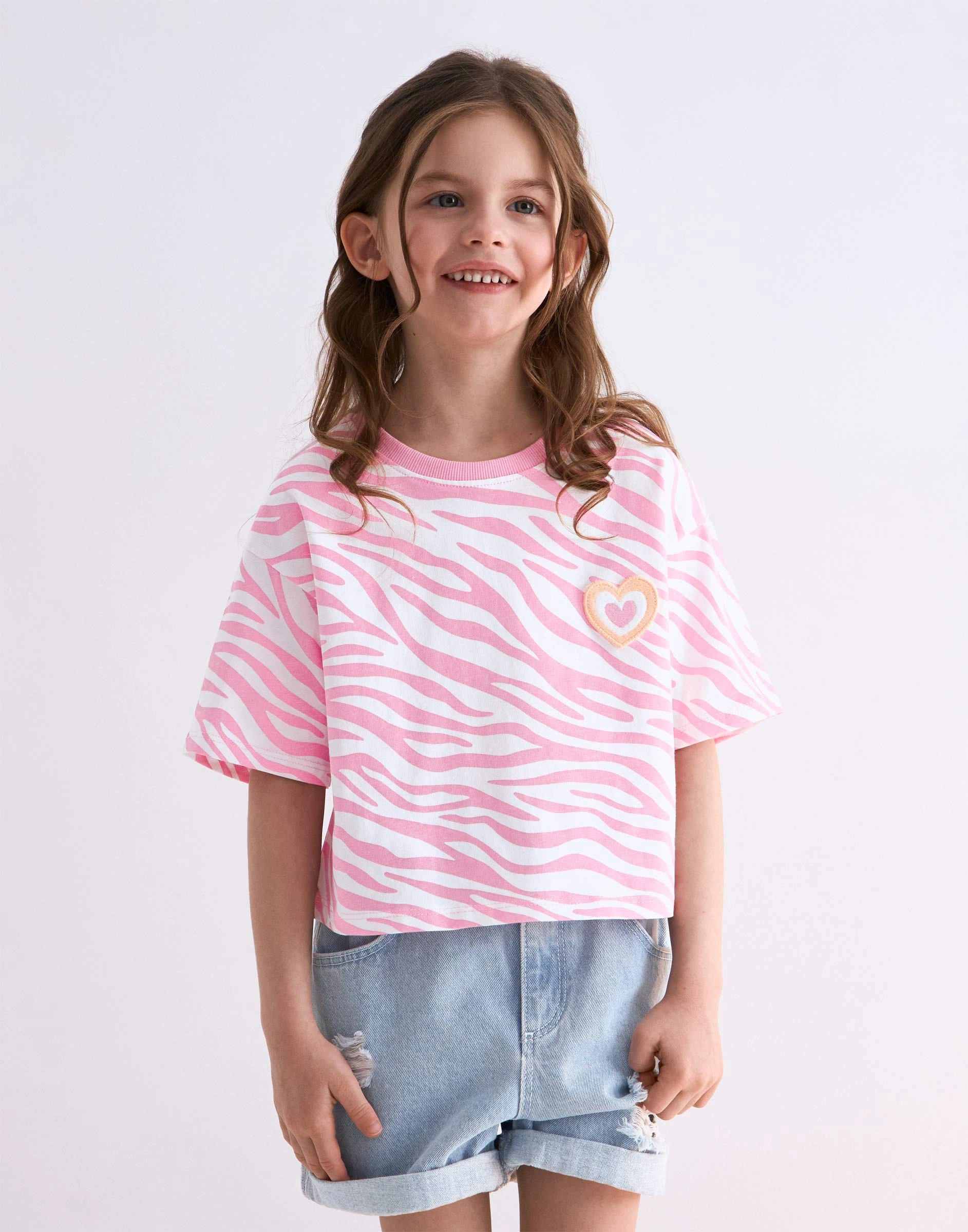 Укороченная футболка oversize с принтом и вышивкой для девочки Gkt026696-2