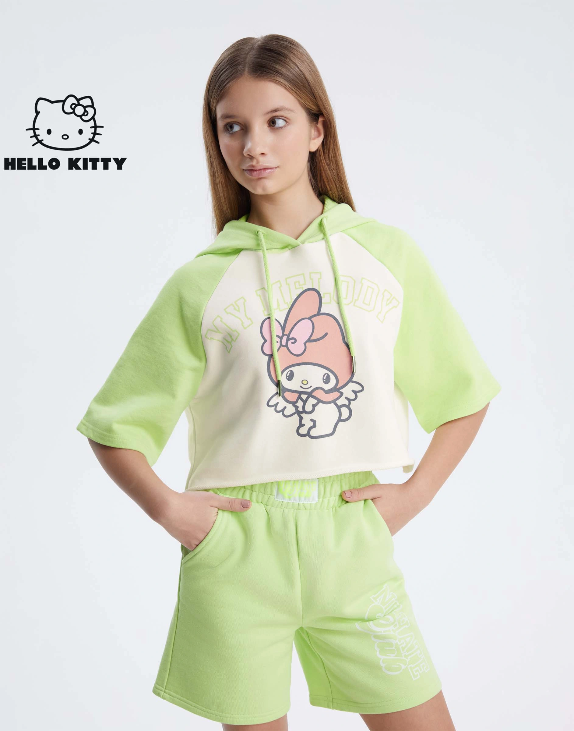 Укороченное худи колор-блок с принтом Melody Gac024668-1