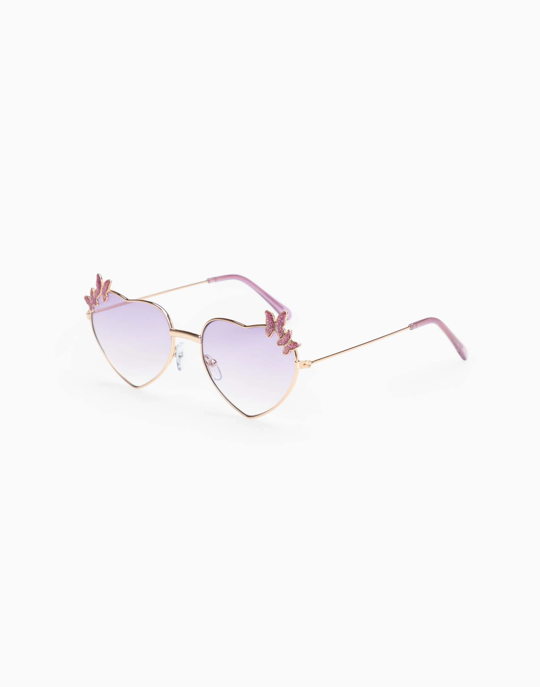 Сиреневые солнцезащитные очки в форме сердец с бабочками Gas016063-1