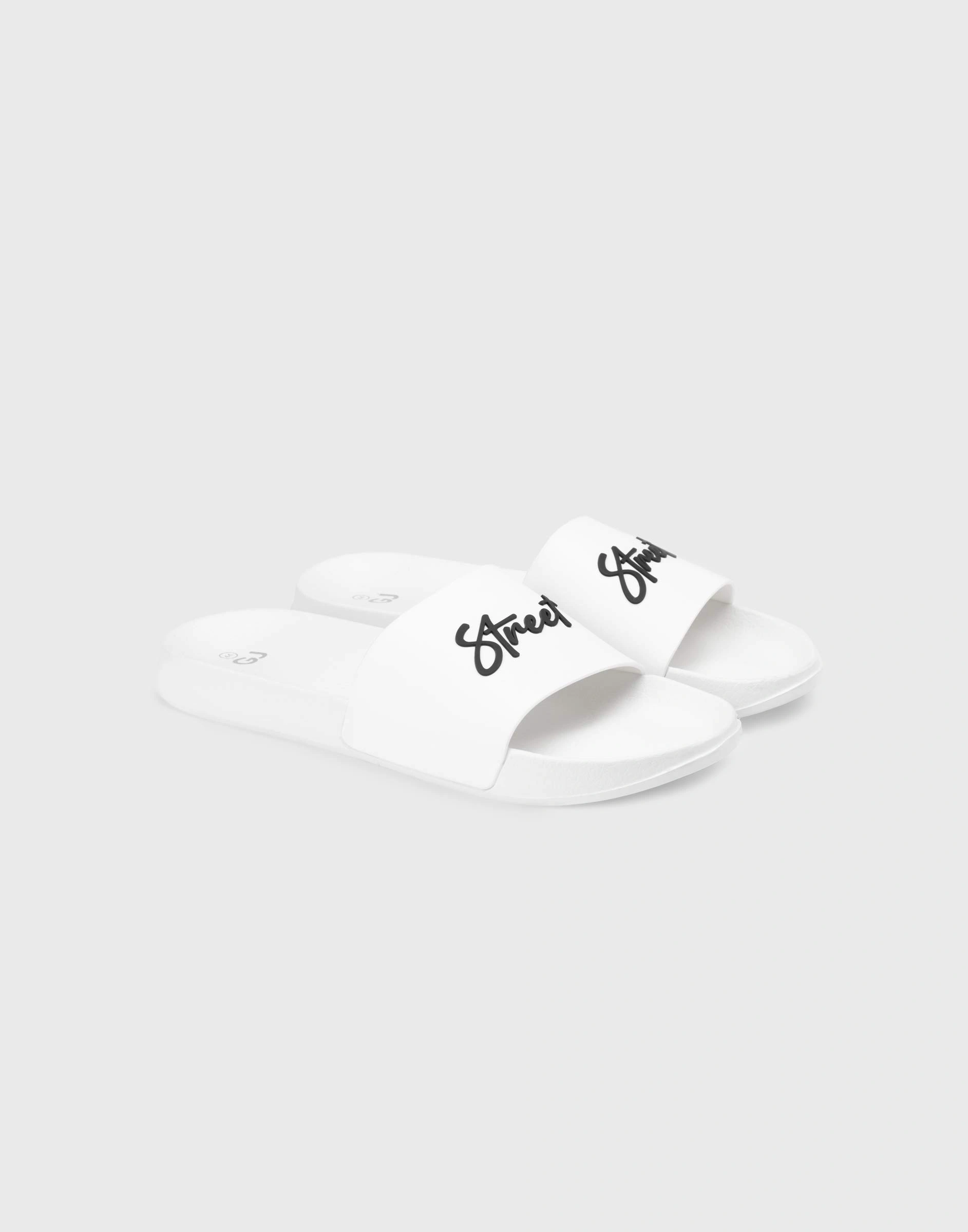 Белые резиновые шлёпанцы с надписью Bfw001523-1