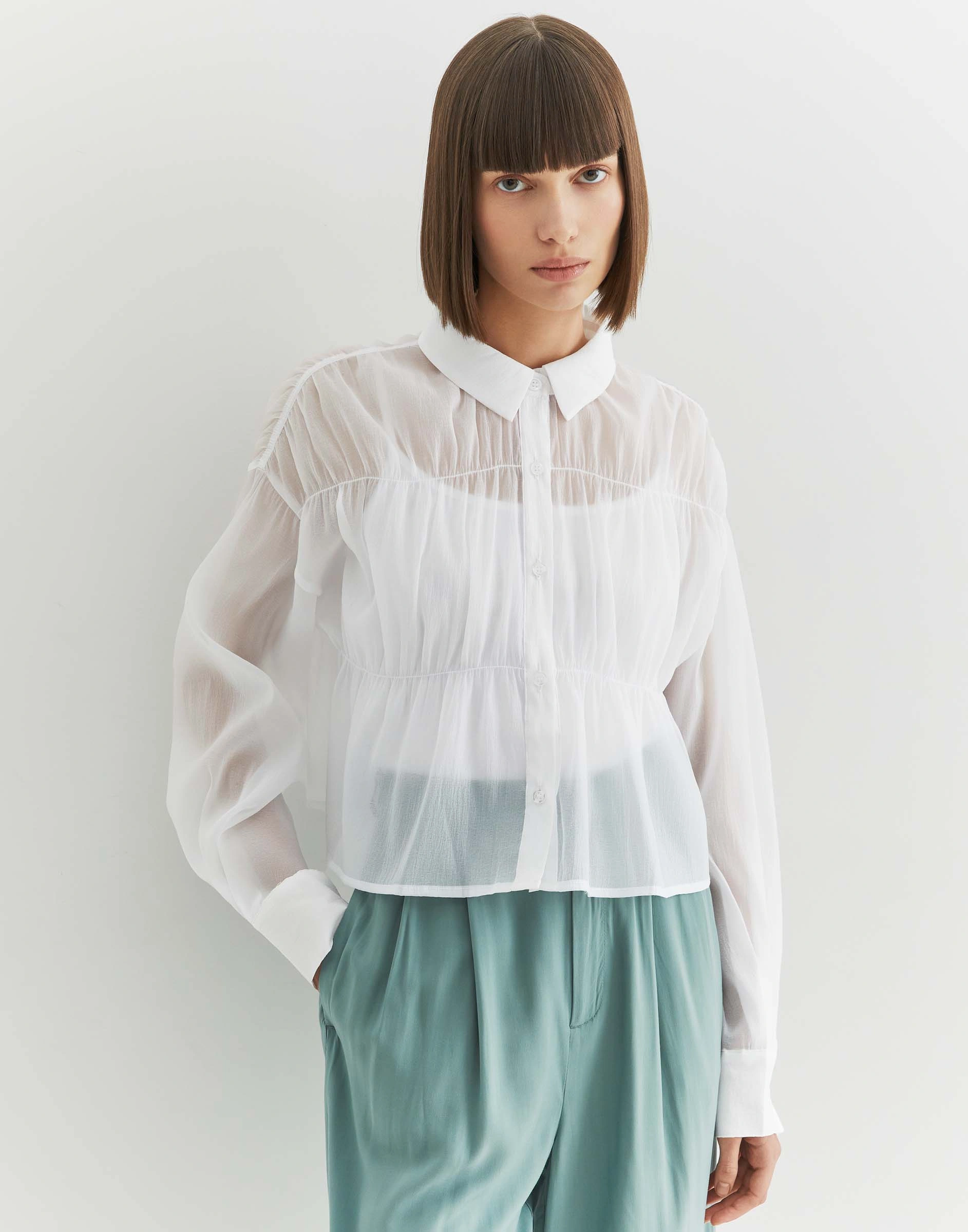 Белая укороченная рубашка со сборками Gwt004881-2