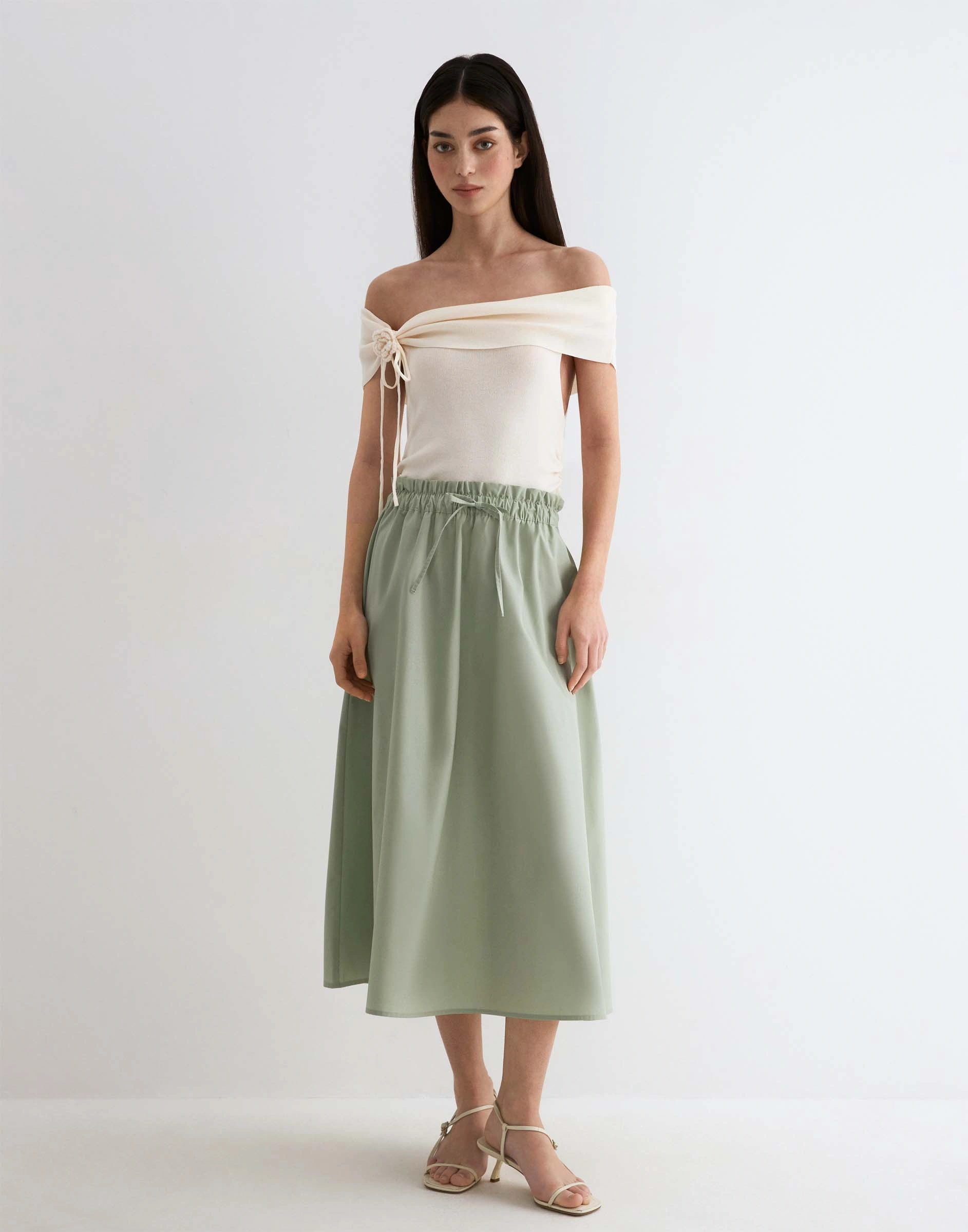 Оливковая расклёшенная юбка миди Gsk019723-2